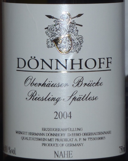 Hoy os acerco este vino Dönnhoff Oberhäuser Brücke Auslese Goldkapsel 2004, un riesling de Alemania elaborado por la Bodega Hermann Dönnhoff y que nos ha caído en las manos recientemente.