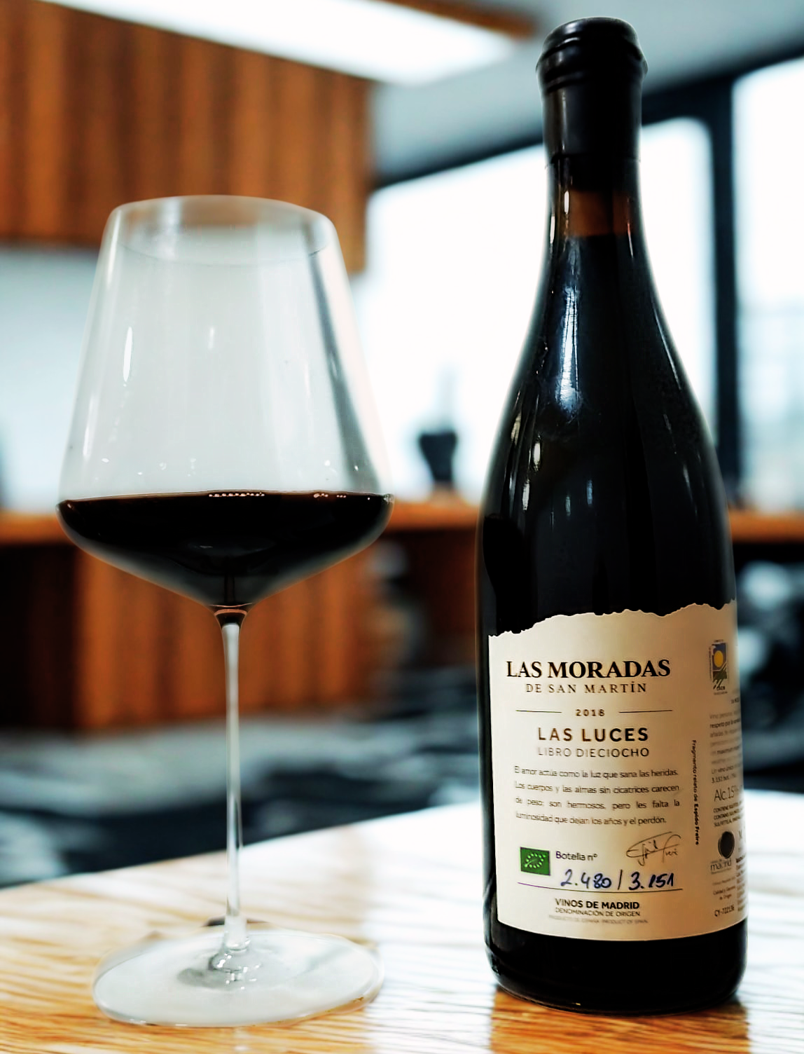 Las Luces Libro Dieciocho 2018, es un vino monovarietal Garnacha que elabora la bodega Las Moradas de San Martín al amparo de la D.O. Vinos de Madrid y que muestra la excelencia de esta varietal al darle una larga crianza, en este caso, 18 meses en barricas de roble francés, permitiendo encontrarnos en su cata un vino que une la complejidad de su elaboración, con la potencia de la fruta típica de esta uva.