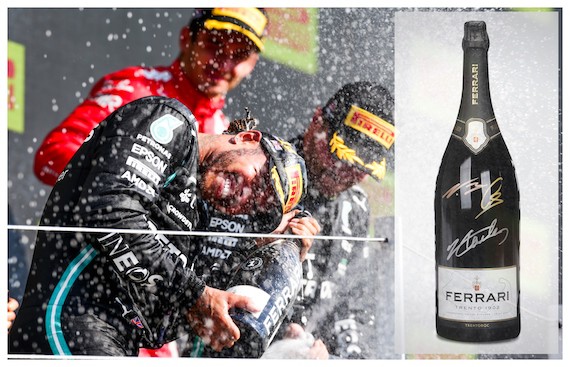 The official toast of F1, Ferrari Trento is auctioning a total of 18 Ferrari Trento Blanc de Blancs bottles, signed by the top three drivers from each race after the podium celebrations.