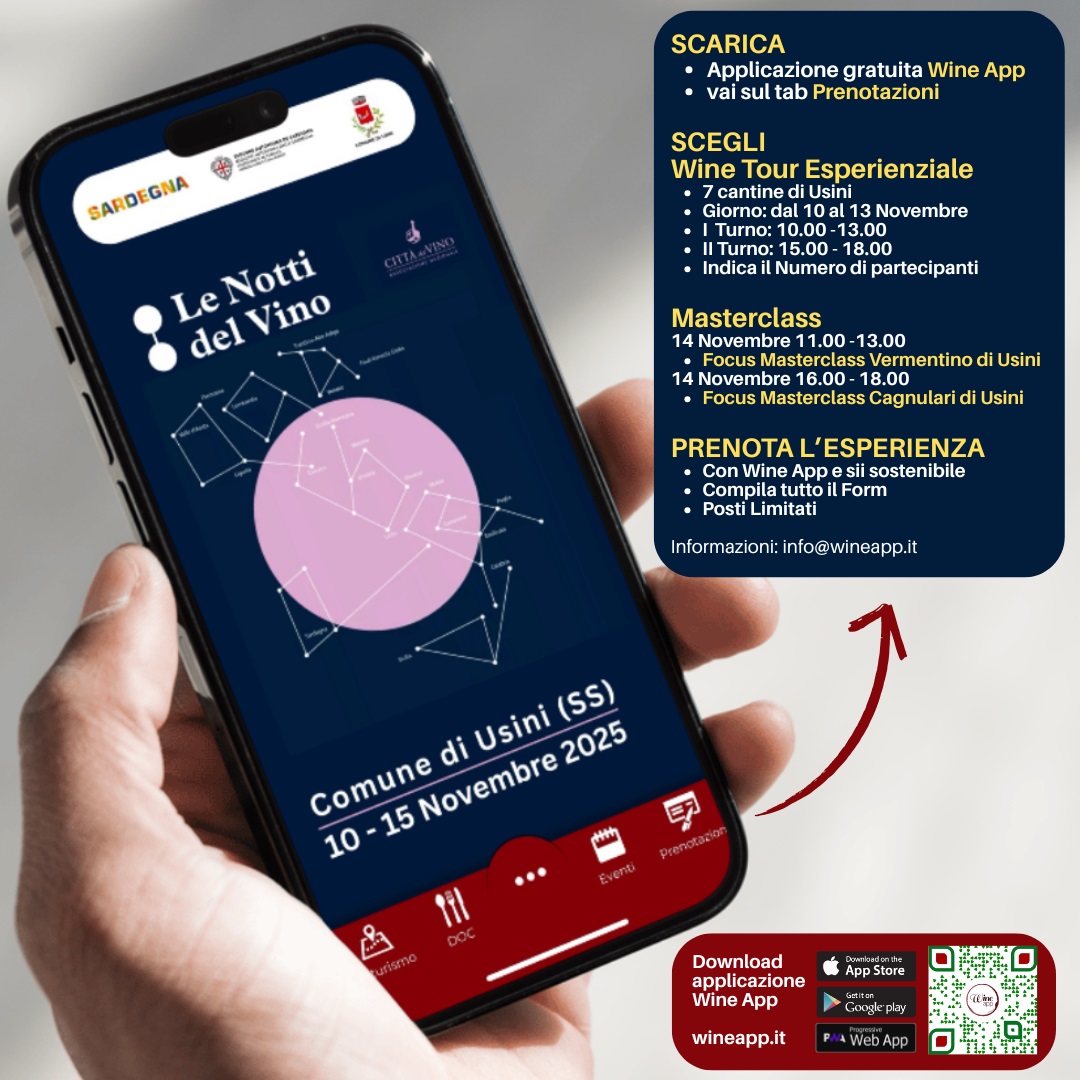 La rueda de prensa de presentación de «Le Notti del Vino» (Las Noches del Vino) tuvo lugar el 1 de noviembre en el prestigioso salón de plenos del Ayuntamiento de Usini. Esta iniciativa gastronómica y vinícola ya ha dado vida a cientos de ciudades vinícolas italianas, y Usini será protagonista con un programa de eventos del 10 al 15 de noviembre. La localidad, que se benefició de una convocatoria regional de propuestas para el turismo experiencial, acogerá una de las paradas de este evento nacional.