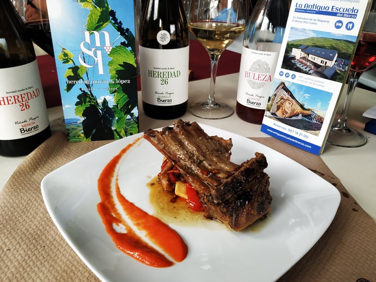 Una auténtica delicia la oferta que presenta La Antigua Escuela del Bierzo en Pobladura de las Regueras incluyendo la posibilidad de disfrutar de una noche de alojamiento para no tener problemas de tiempo tras disfrutar de una cena ni verse obligado uno a tener que usar el coche. Y, como os comentábamos anteriormente, la oferta gastronómica ha ido acompañada de los vinos de la bodega Heredad Morán & López, del tinto joven mencía, Heredad 26 Tinto, del blanco godello sobre lías, Heredad 26 Godello Lías y del rosado, Buleza.