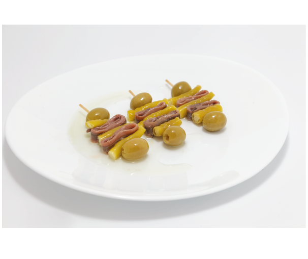 Y no podíamos pasar sin mencionar una de las delicias que elaboran como son las «Gildas Dobles de Anchoa», donde a la anchoa le añaden por un lado, la «piparra», la guindilla de textura muy tierna, ligeramente picante, recogida en la campaña de verano y, por otro, aceitunas de la variedad manzanilla natural, recogidas en verde durante septiembre y octubre, con una curación de 8 meses.