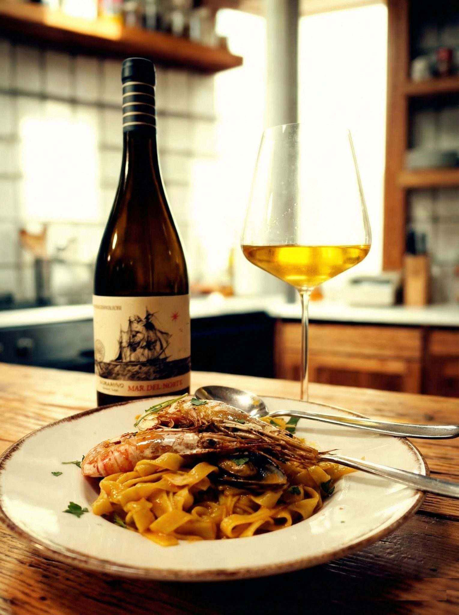 Maridaje atlántico perfecto: Mar del Norte 2024 y tallarines con gambones