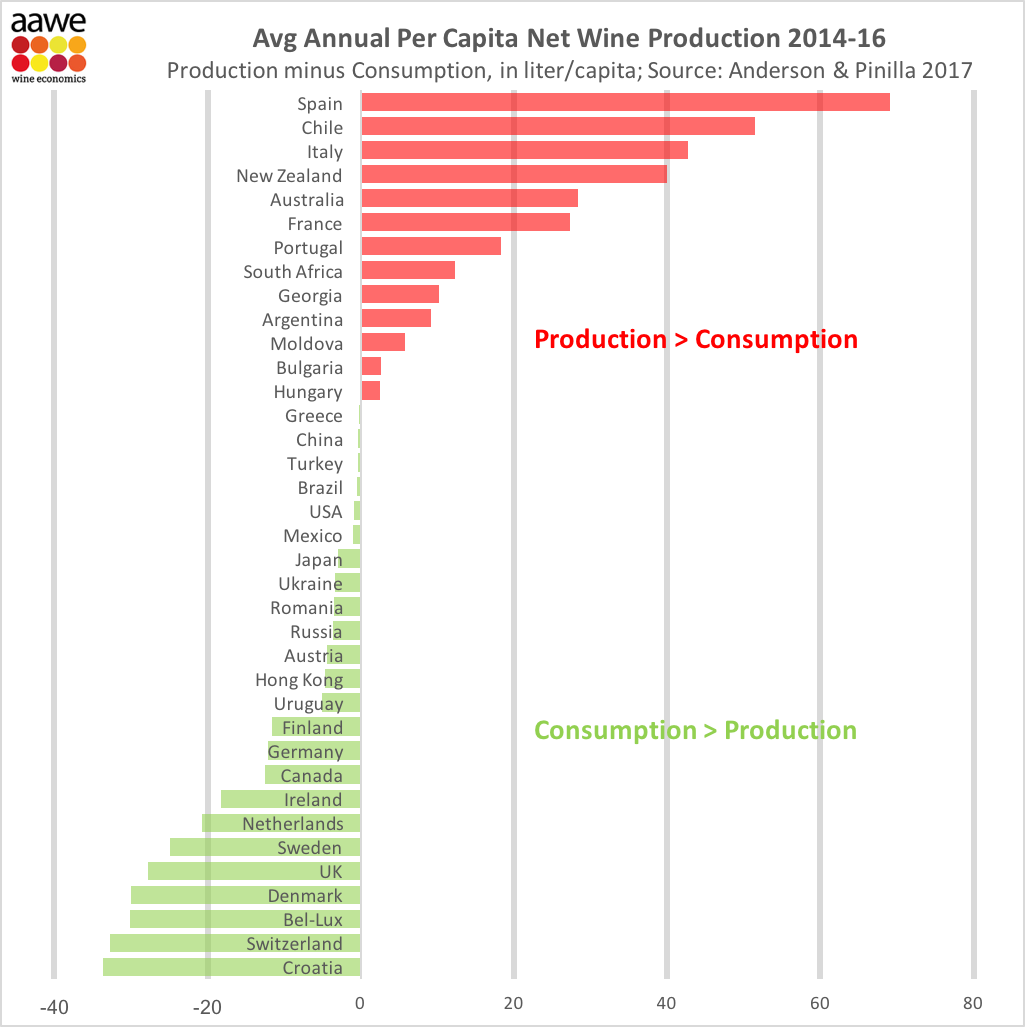 España encabeza el ranking de países que mayor diferencia tienen entre vino producido y consumido, ahondando en el tema de ayer en el que comentábamos que pese a ser el país más permisivo del mundo en cuanto al máximo recomendado del consumo de alcohol semanal, y de los que menos vino consumiamos.