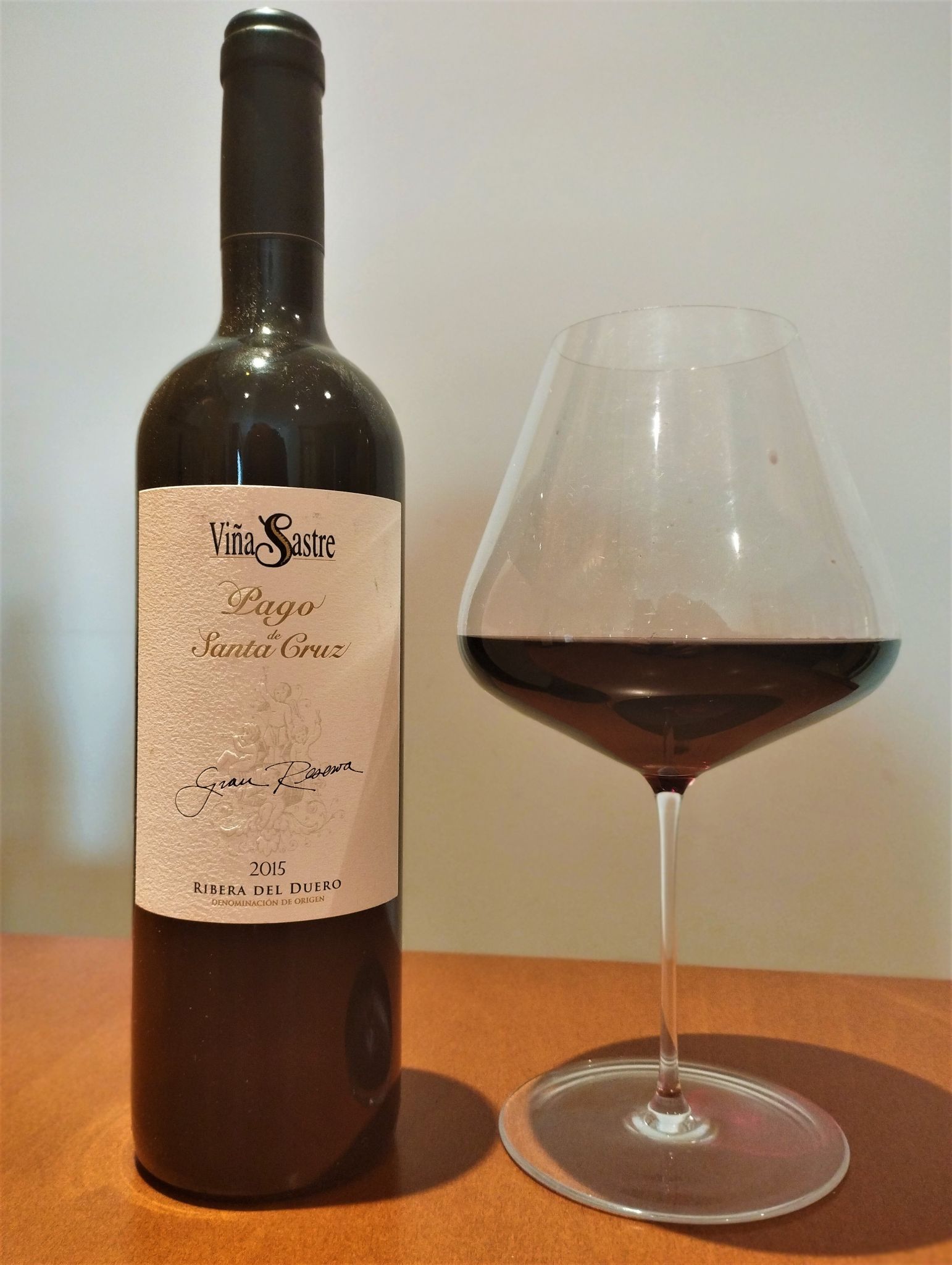 Enorme vino muy del estilo de Viña Sastre, completamente reflejo de la tipicidad de su estilo y de la Ribera del Duero (La Horra), de un viñedo situado a una altitud de 840 metros de unos 75 años de edad, plantado en vaso sobre suelos arcilloso calcáreo, de reducidísima producción y trabajado de forma tradicional, como es la norma de esta bodega, sin adicción de abonos minerales, herbicidas o insecticidas.