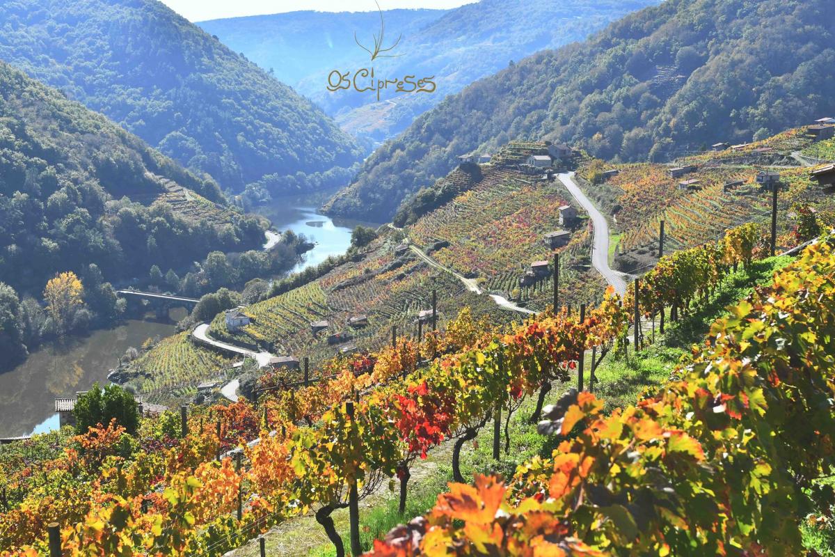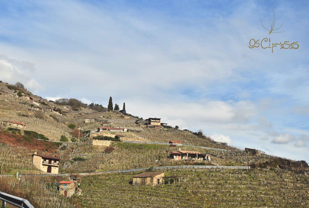 Una bodega familiar que recibe el nombre por los dos cipreses que se encuentran en la entrada de la misma, plantados haca más de 300 años y que eran un anuncio a los caminantes de que allí se daba ‘posada’ y un vaso de vino. Desde la entrada ya se puede observar de forma majestuosa una ladera de viñedos que descienden vertiginosos hacia el río Miño.