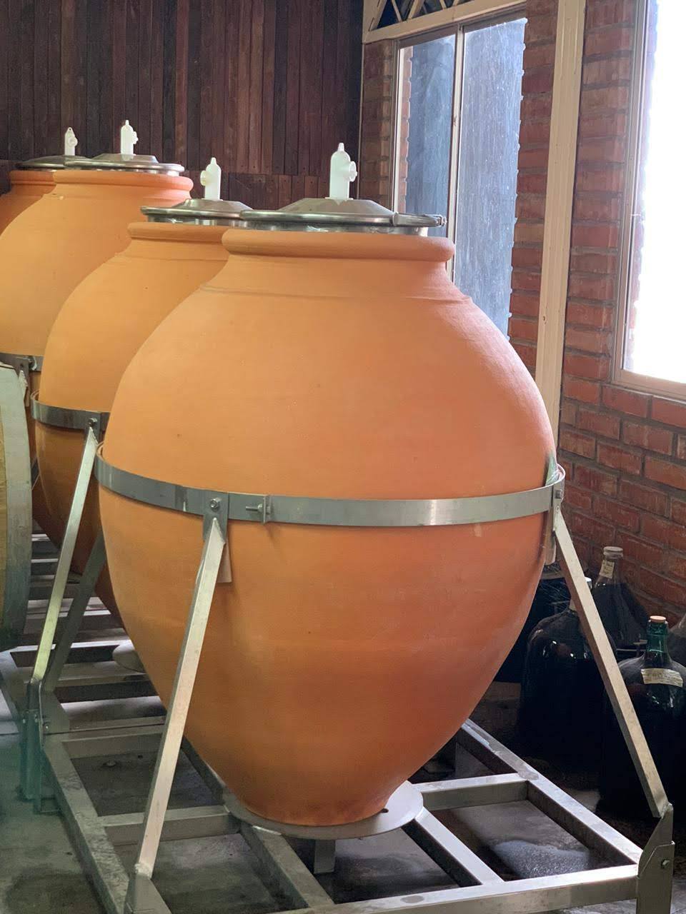 Luego de la elaboración, parte del vino queda en las ánforas y otra parte pasa a barricas de 600 Litros de roble francés donde descansará por 15 a 18 meses según el vino.