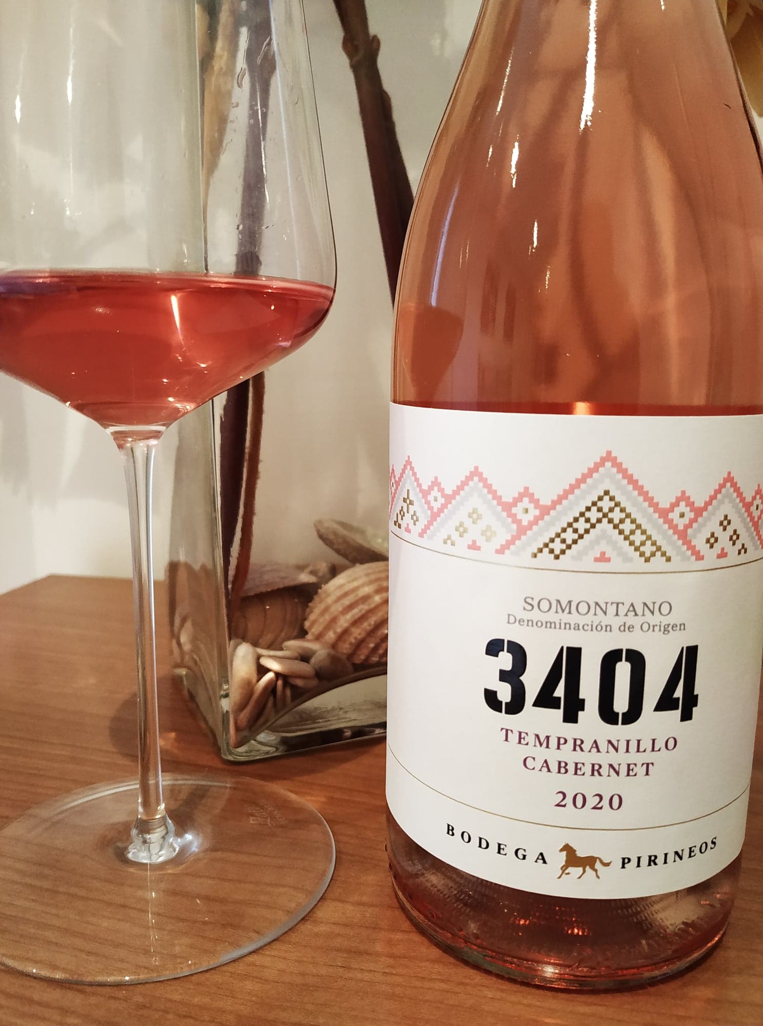 Una nueva añada de este vino rosado que, como véis, se elabora con una combinación de Tempranillo y de Cabernet Sauvignon. Un vino que en vista nos deja un color rosa pálido o rubor (blush), un corte ‘provenzal’. Bodegas Pirineos emplea dos varietales en este 3404 Rosado 2020 lo que le dan muchos matices en nariz y boca a lo largo de su cata. Una nariz con fruta fresca (fruta roja y cítricos) en la que destacan mucho los aromas florales (rosas, violetas). La boca es fresca de ataque, con mucha fruta y buena acidez, que da paso en el paladar a un vino realmente goloso. Muy buen volumen en el paso por boca, bien equilibrado. La acidez le ayuda a darle un buen frescor encada trago, así como a mantener un buena persistencia.